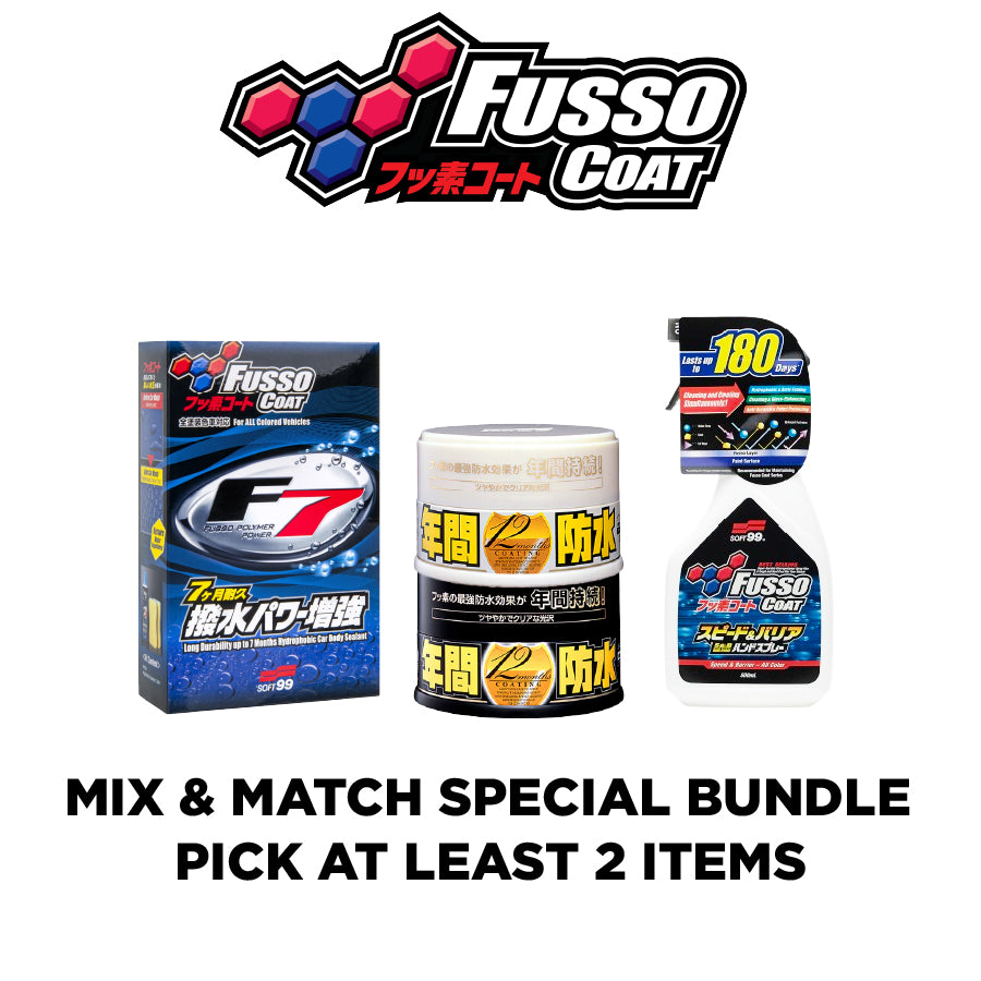 Experience the power of Fusso’s advanced fluoropolymer technology — engineered for unmatched gloss, slickness, and protection that lasts. The Fusso Mix & Match Special Bundle lets you customize your car care routine and save when you pick 2 or more items from the legendary Fusso lineup.